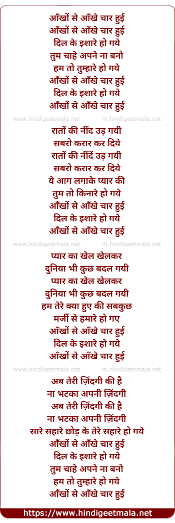 Lyrics of Ankho Se Ankhe Char Hui Dil Ke - आँखों से आँखे चार हुई