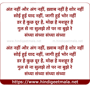 Lyrics of Ant Nahin Aur Ang Nahin, Sandhyaa - अंत नहीं और अंग नहीं, संध्या