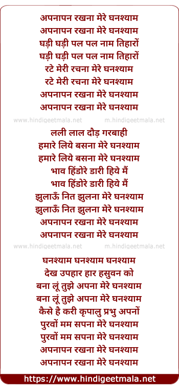 Lyrics of Apnapan Rakhna Mere Ghanshyam - अपनापन रखना मेरे घनश्याम