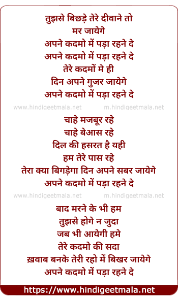 Lyrics of Apne Kadamo Me Pada Rehne De (Tujhse Bichhade Tere Diwane)