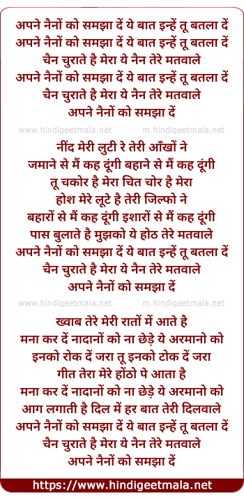 Lyrics of Apne Nainon Ko Samjha De Ye Bat Inhe - अपने नैनों को समझा दें ये बात इन्हें