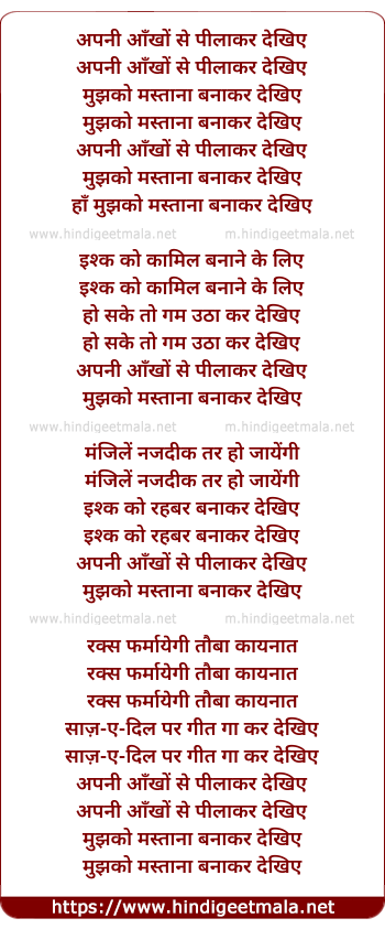 Lyrics of Apni Aankho Se - अपनी आँखों से पीलाकर देखिए