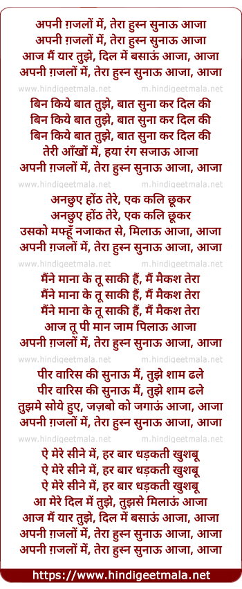 Lyrics of Apni Ghazalo Me Tera Husn Sunaau - अपनी ग़जलों में, तेरा हुस्न सुनाऊ आजा