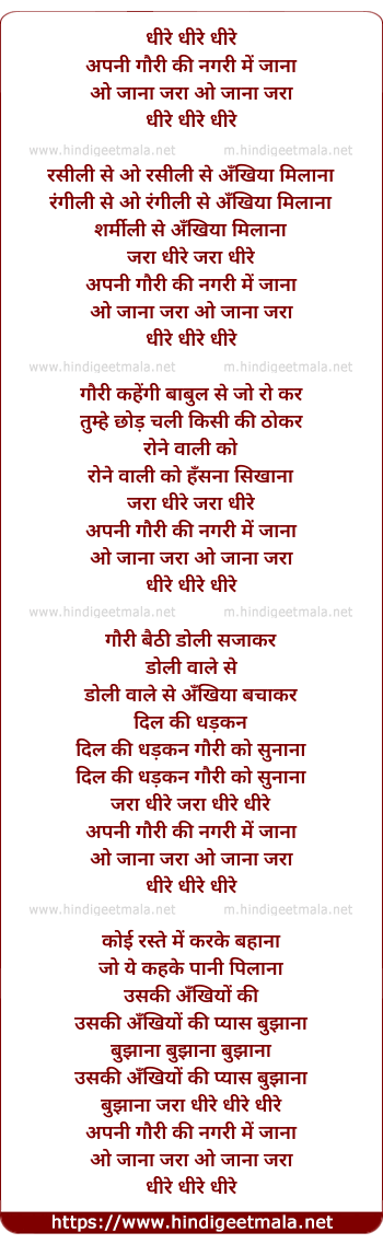 Lyrics of Apni Gori Ki Nagri Me Jana - धीरे धीरे धीरे