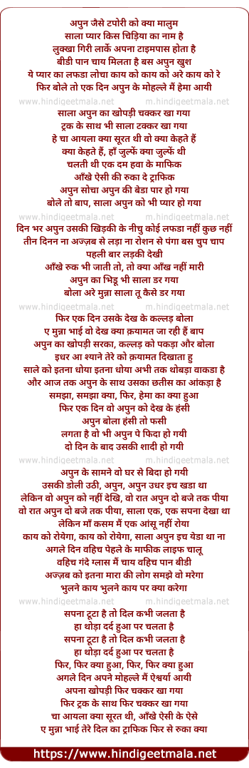 Lyrics of Apun Jaise Tapori - अपुन जैसे टपोरी