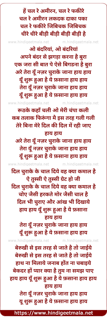 Lyrics of Are Chal Re Amiran, Chal Re Fakire - हें चल रे अमीरन, चल रे फकीरे