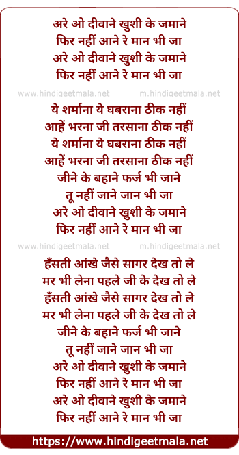 are o deewane khushi ke jamane