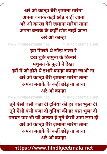 Lyrics of Are O Kanha Bairi Zamana - अरे ओ कान्हा बैरी ज़माना