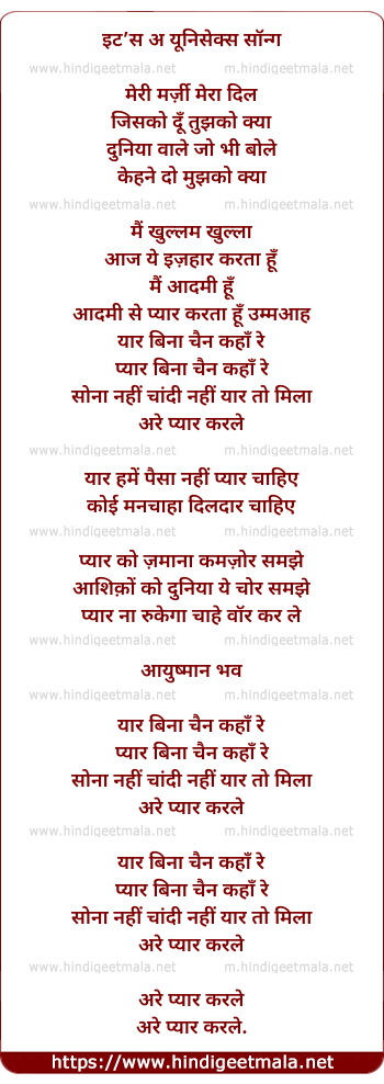 Lyrics of Are Pyaar Kar Le - अरे प्यार कर ले