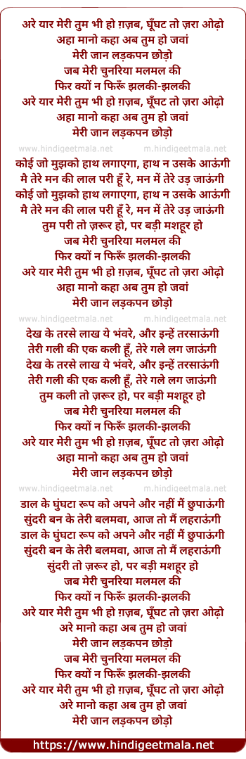 jab meri chunriya malmal ki, phir kyo na phiru jhalki-jhalki