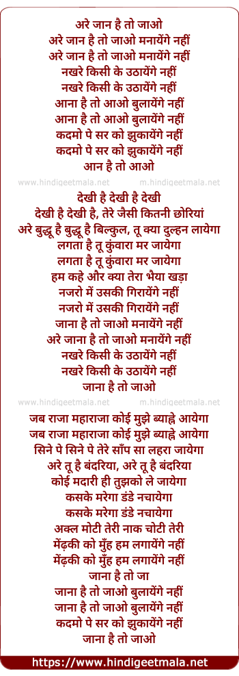 Lyrics of Are Jana Hai To Jao - अरे जाना है तो जाओ