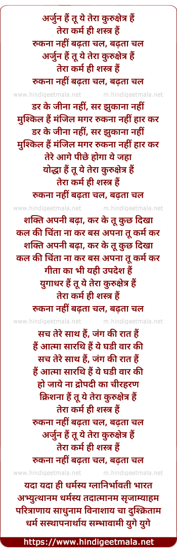 Lyrics of Arjun Hai Tu Ye Tera Kuruxetra Hai - अर्जुन हैं तू ये तेरा कुरुक्षेत्र हैं