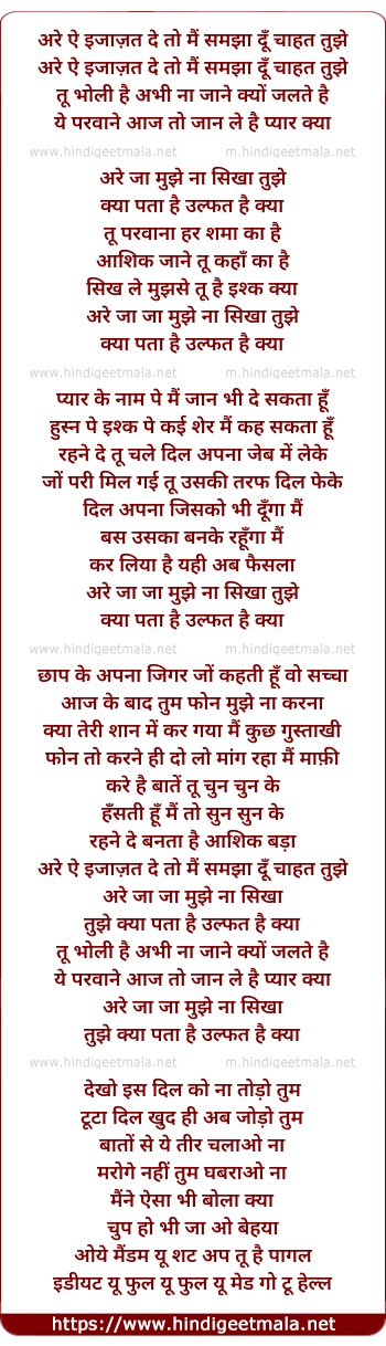 Lyrics of Arre Ae Ijazat De - अरे ऐ इजाज़त दे