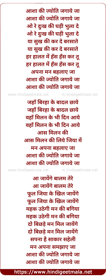 Lyrics of Asha Ke Jyoti Jagaye Ja - आशा की ज्योति जगाये जा