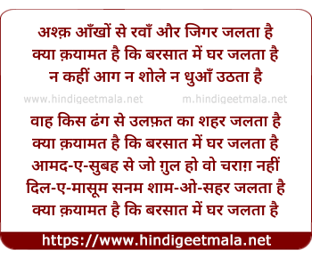Lyrics of Ashq Aankhon Se Ravaan Aur Jigar Jalataa Hai - अश्क़ आँखों से रवाँ और जिगर जलता है
