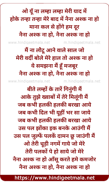 naina ashq na ho, naina ashq na ho