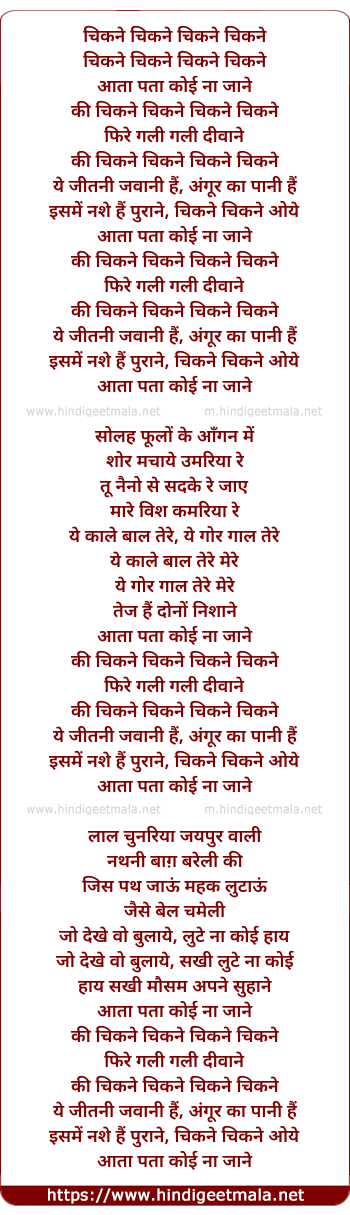 Lyrics of Ataa Pata Koi Na Jane - अता पता कोई ना जाने