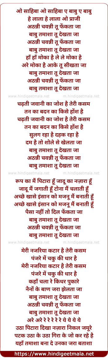Lyrics of Athanni Chawanni Tu Phekta Ja - अठन्नी चवन्नी तू फेंकता जा