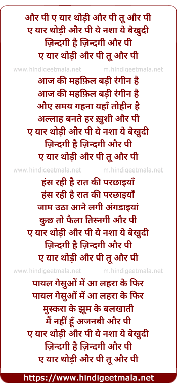 Lyrics of Aur Pee Eye Yaar Thodi Aur Pee - और पी ए यार थोड़ी और पी