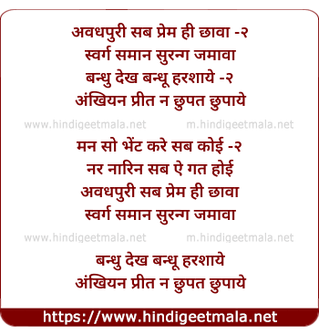 Lyrics of Avadhapuri Sab Prem Hi Chhaavaa - अवधपुरी सब प्रेम ही छावा -२
