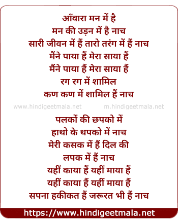Lyrics of Awara Man Me Hai Man Ki Umang Me Hai Naach - आँवारा मन में है मन की उमंग में है नाच