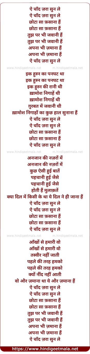 Lyrics of Aye Chaand Zara Sun Le - ऐ चाँद ज़रा सुन ले