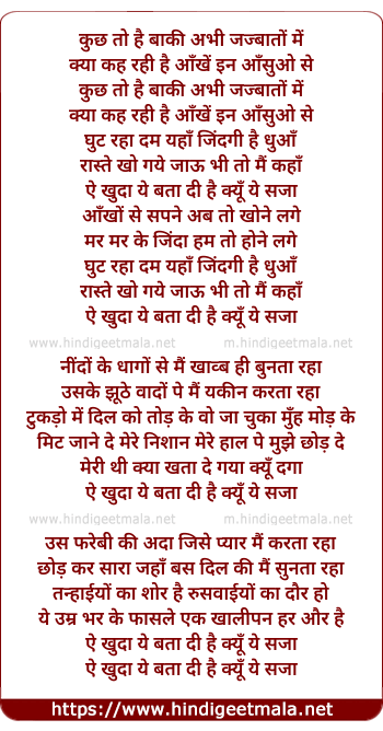 Lyrics of Aye Khuda Yeh Bat - ऐ खुदा ये बता