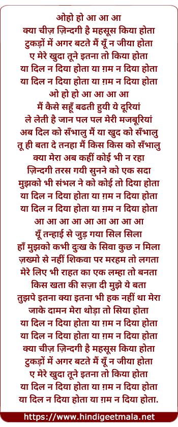 ya dil na diya hota, ya gham na diya hota