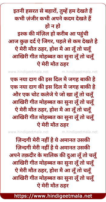 Lyrics of Aye Meri Maut Thahar - ऐ मेरी मौत ठहर