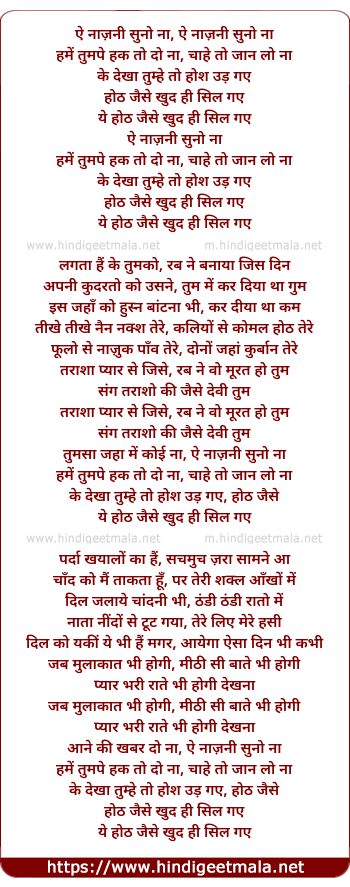 Lyrics of Aye Nazni Suno Na - ऐ नाज़नी सुनो ना