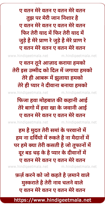 Lyrics of Aye Watan Mere Watan