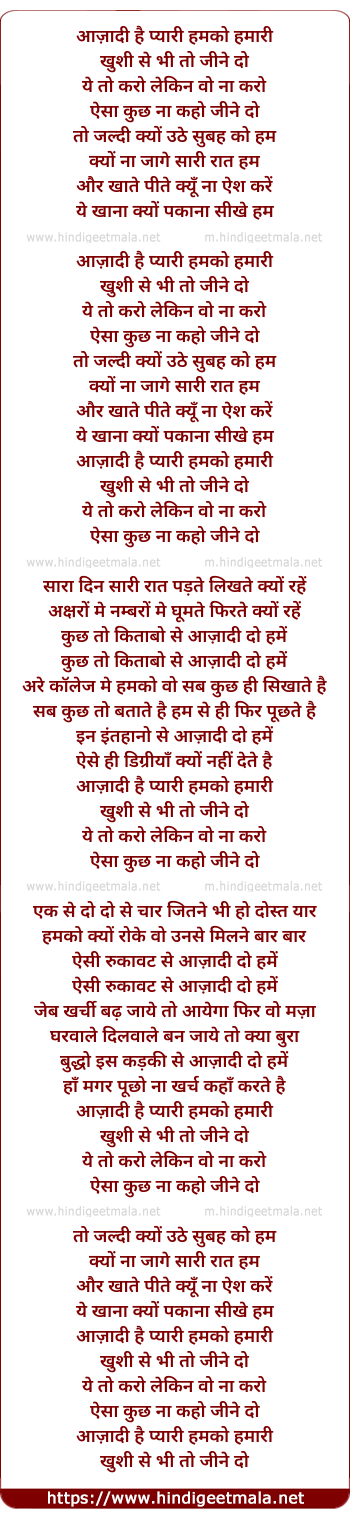 Lyrics of Aazaadi Hai Pyari - आज़ादी है प्यारी