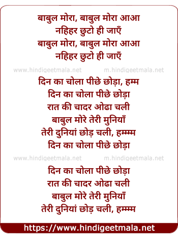 baabul more teri muniya