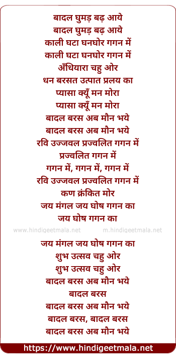 Poetic Translation - Lyrics of Baadal Ghumad Badh (Female) - बादल घुमड़ बढ़