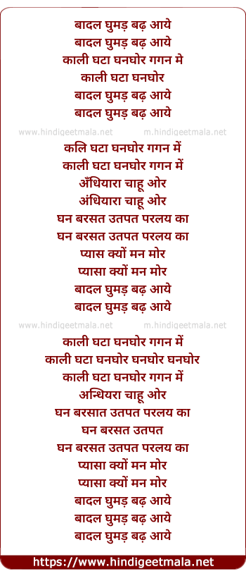 Poetic Translation - Lyrics of Baadal Ghumad Badh (Male) - बादल घुमड़ बढ़