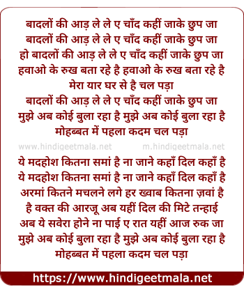 Lyrics of Badalo Ki Aad Le Le - बादलों की आड़ ले ले