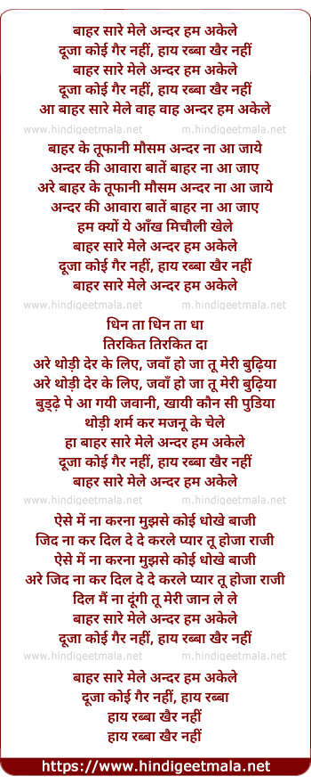 Lyrics of Baahar Sare Mele - बाहर सारे मेले