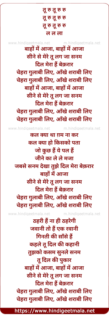 Lyrics of Baaho Me Aaja - बाहों में आजा