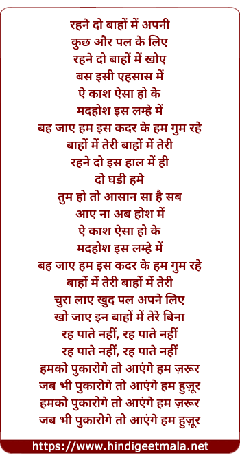 rehne do bahon mein apni kuchh or pal ke liye