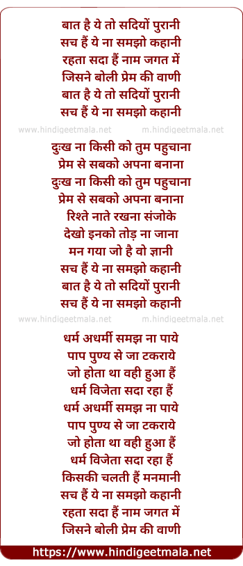 Lyrics of Baat Hai Ye To Sadiyon Purani - बात है ये तो सदियों पुरानी