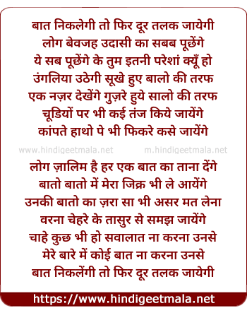 Lyrics of Baat Niklegi To Phir - बात निकलेगी तो फिर दूर तलक जायेगी
