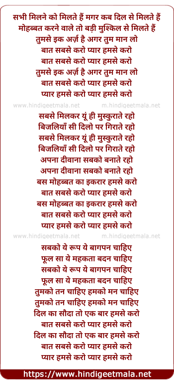 Lyrics of Baat Sabse Karo - बात सबसे करो