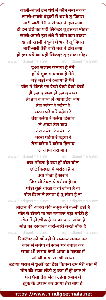 Lyrics of Baba Theme (Jaali Jaali Is Dhandhe Mein) - बाबा थीम
