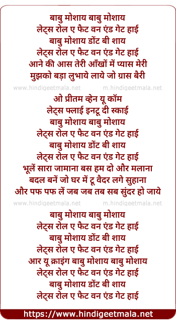 Lyrics of Babu Moshai - बाबु मोशाय