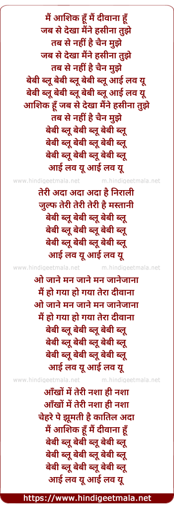 Lyrics of Baby Blue (Sukhwinder Singh) - मैं आशिक हूँ मैं दीवाना हूँ