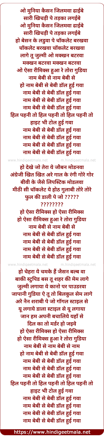 Poetic Translation - Lyrics of Baby Doll, Naam Baby Se - बेबी डोल, नाम बेबी से