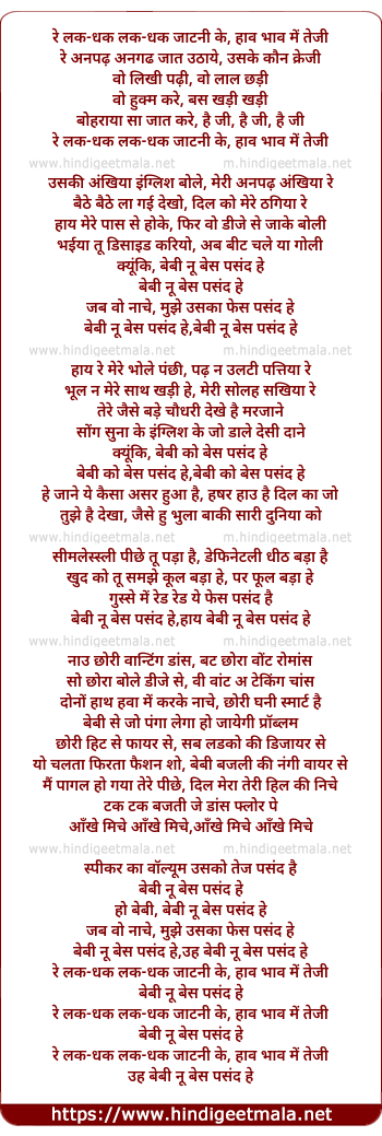 Poetic Translation - Lyrics of Baby Nu Bass Pasand Hai (Salman Khan Version) - रे लक-धक लक-धक जाटनी के, हाव भाव में तेजी