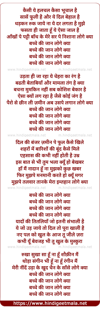 Lyrics of Bachche Ki Jaan Loge Kya - बच्चे की जान लोगे क्या