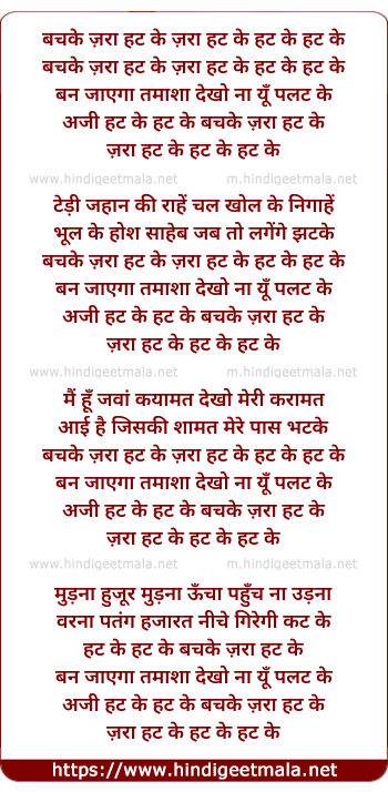 Lyrics of Bachke Zara Hat Ke Zara - बचके ज़रा हट के ज़रा