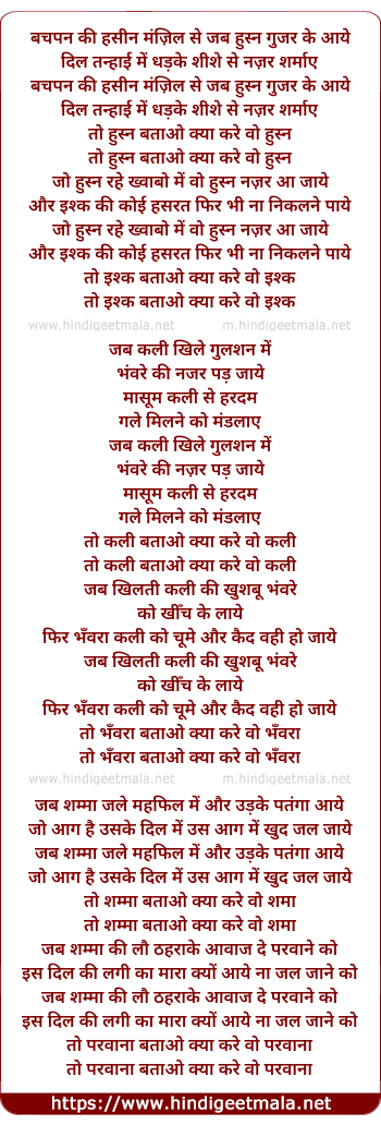 Lyrics of Bachpan Ki Hasin Manzil Se - बचपन की हसीन मंज़िल से